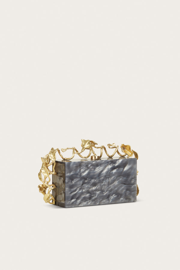 Fit NotesAcrylic box casing Top clasp closure Metal vine hardware with hand openings Can fit phone, wallet, keys Fully lined Composition and Care2.5" x 4" x 4.75" Body: 100% Acrylic Lining: 90% Polyester, 10% Polyurethane |
