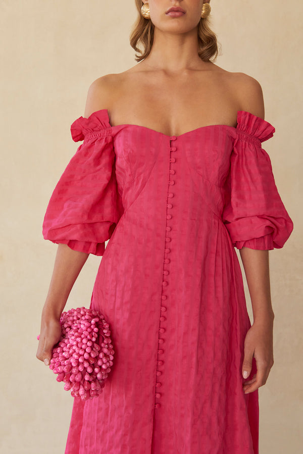 Fit NotesModel is 5'9" and is wearing a size Small Ruching at sleeve opening Center front buttons Invisible side zipper Tape at bust Fully lined Composition and Care45% Linen, 41% Rayon, 14% Silk |