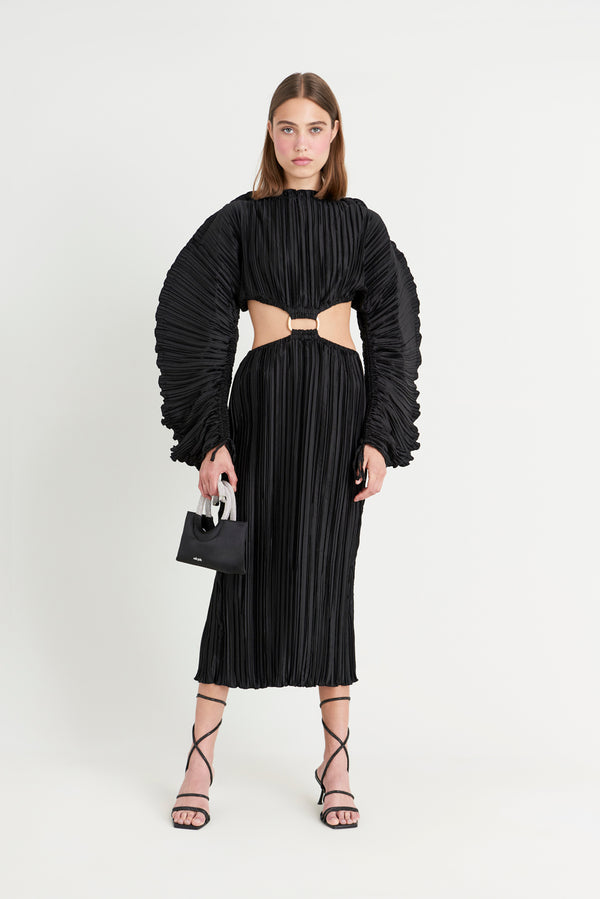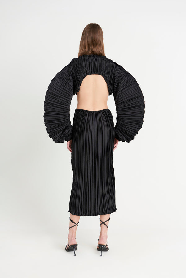 Fit NotesModel is 5'7" and is wearing a size Small Center front cut-out at waist Adjustable sleeves Elastic at waist and lower bodice Meant to be worn as an art piece Unlined Composition and Care100% Polyester |