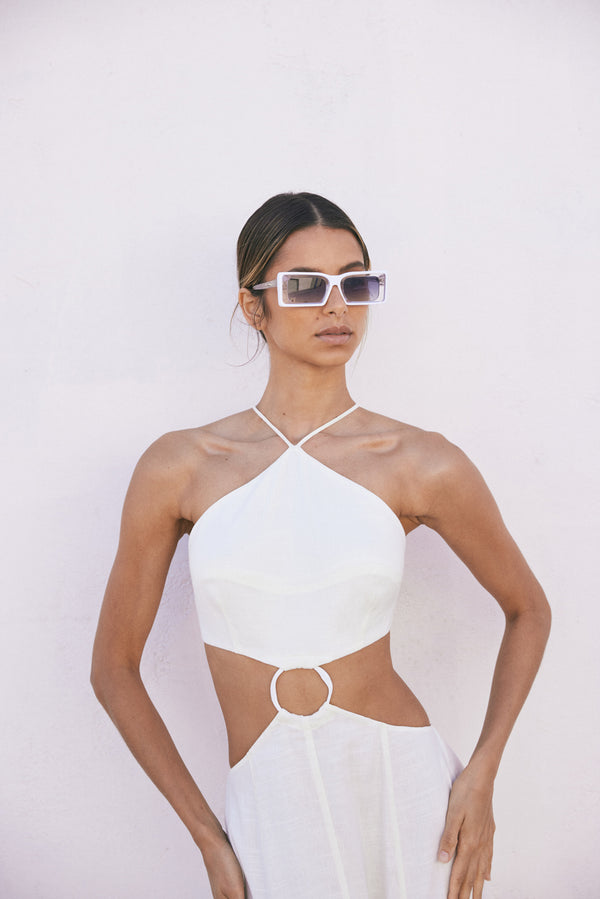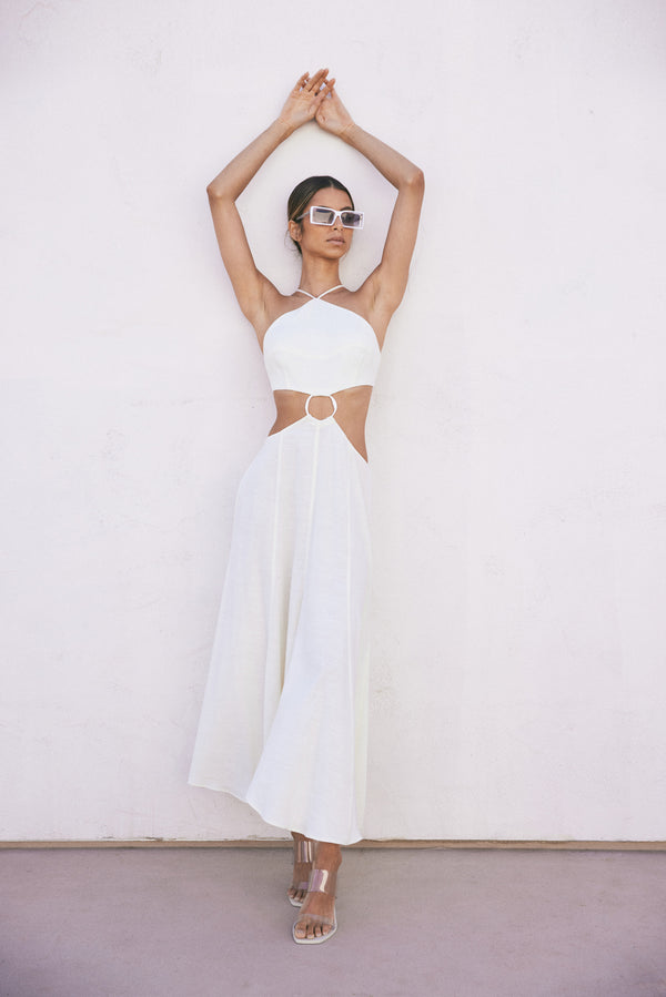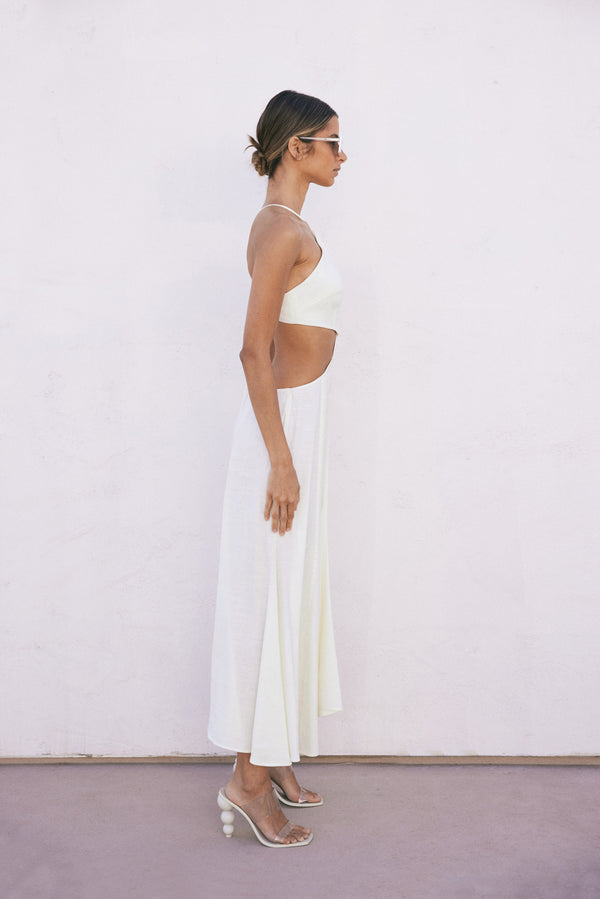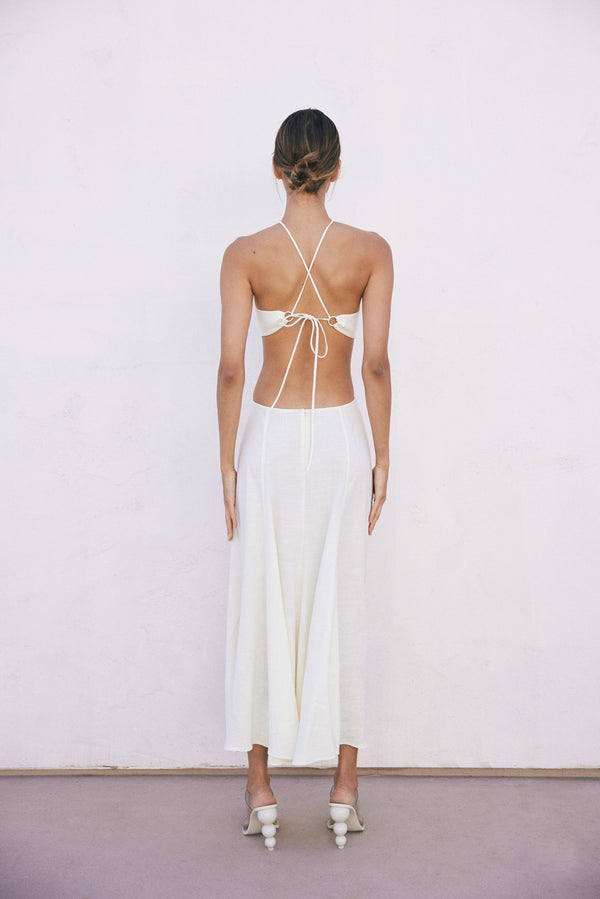 Fit NotesModel is 5'10" and wearing size Small Ankle length Bodice is double-lined in self Skirt is unlined Invisible zipper on skirt For a larger bust, we recommend sizing up Composition and Care51% Linen, 47% Rayon, 2% Spandex |