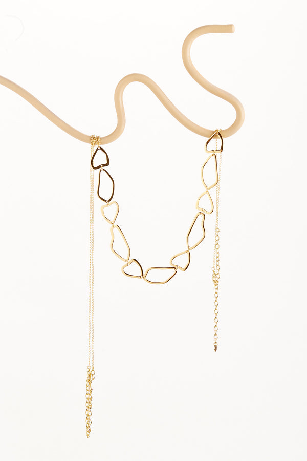 Lobster claw adjustable chain closure at neck and waist
