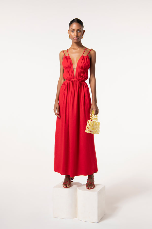 Fit NotesModel is 5'9" and is wearing a size Small Adjustable underbust straps Invisible side zipper Fully lined skirt If in between sizes, we recommend sizing down Composition and Care51% Linen, 47% Rayon, 2% Spandex |