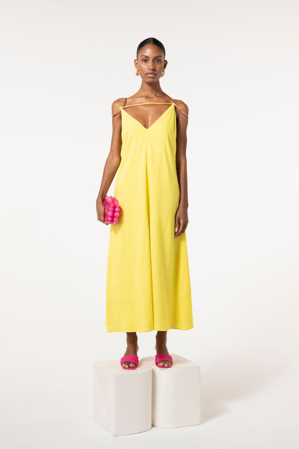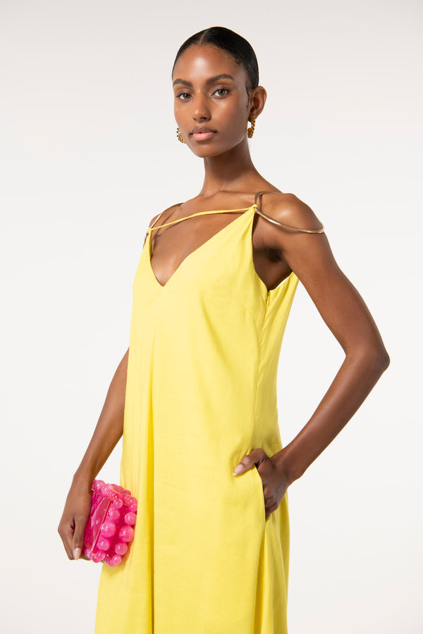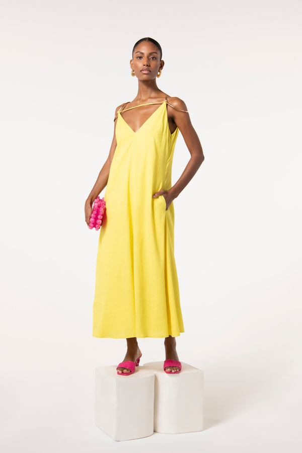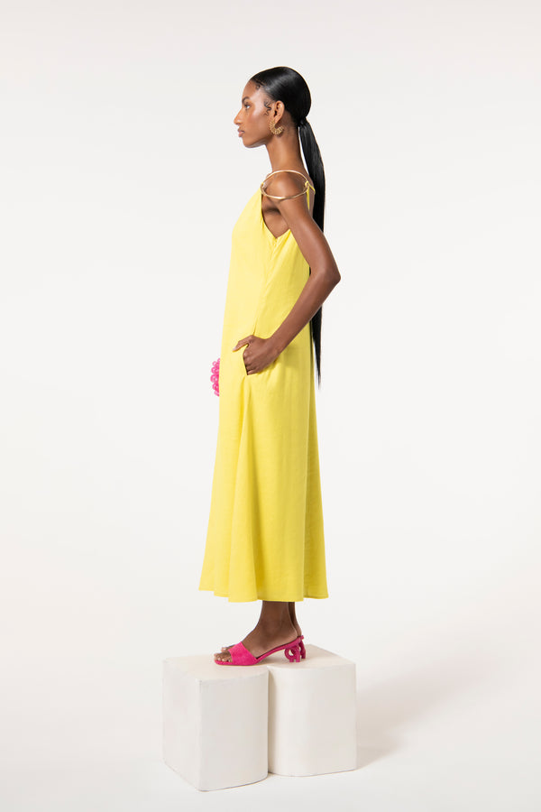 Fit NotesModel is 5'9" and is wearing a size Small Brushed brass shoulder rings Invisible side zipper Pockets Lined Relaxed Fitting Composition and Care51% Linen, 47% Rayon, 2% Spandex |