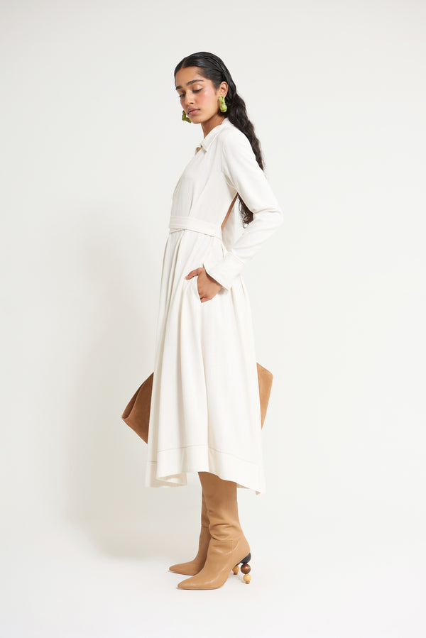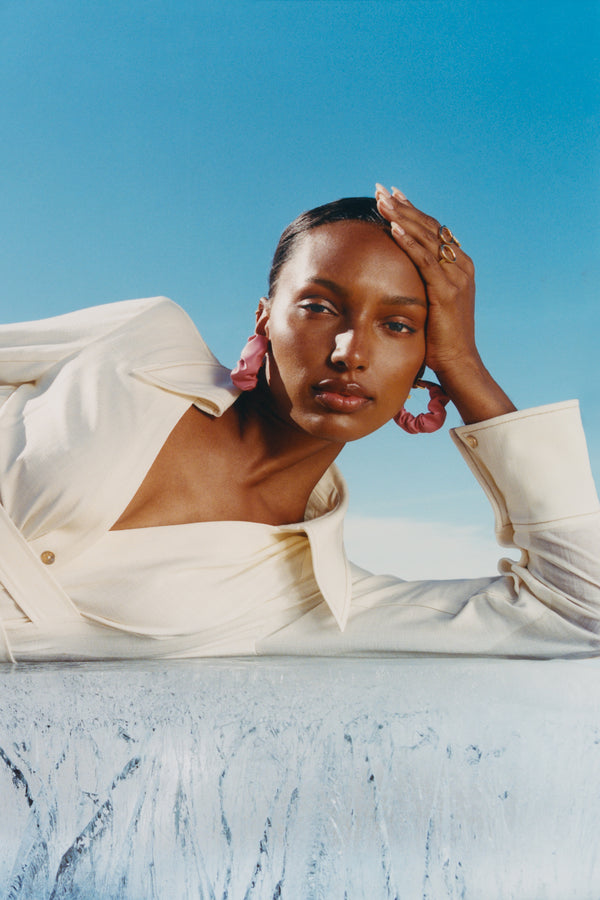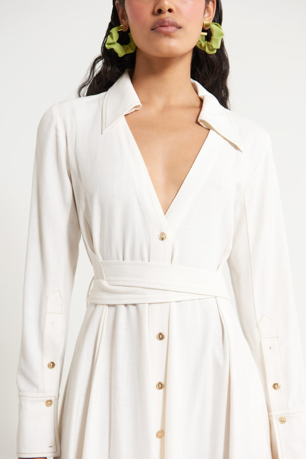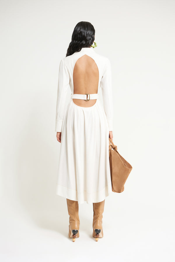 Fit NotesModel is 5'9" and is wearing a size Small Functional center front buttons Wrap tie at waist Buttons at cuff Open back Center back buckle Composition and Care83% Viscose, 14% Polyester, 3% Elastane |