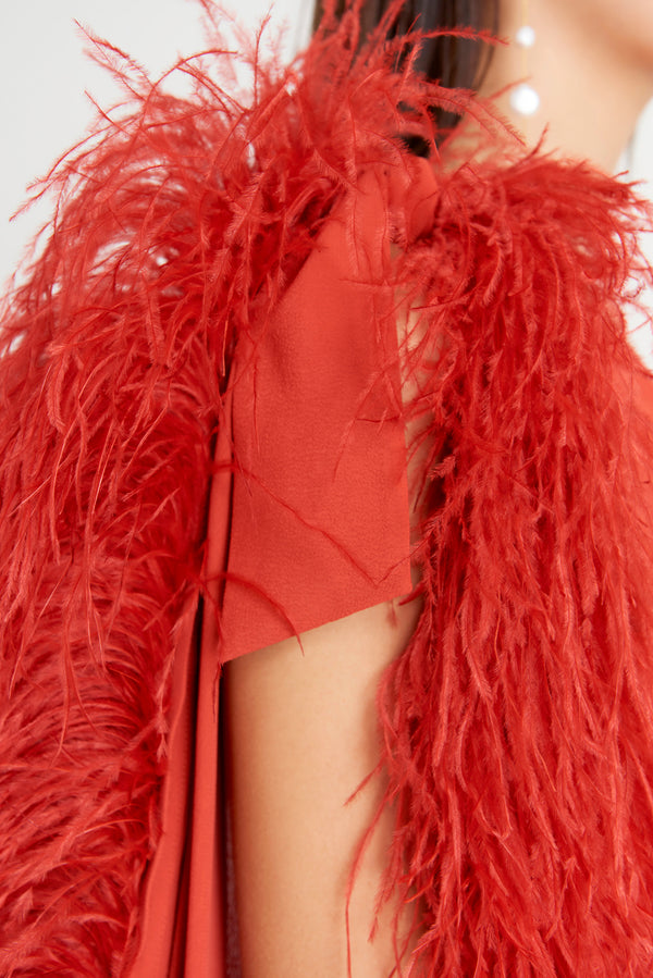 Fur trim at sleeve and hem