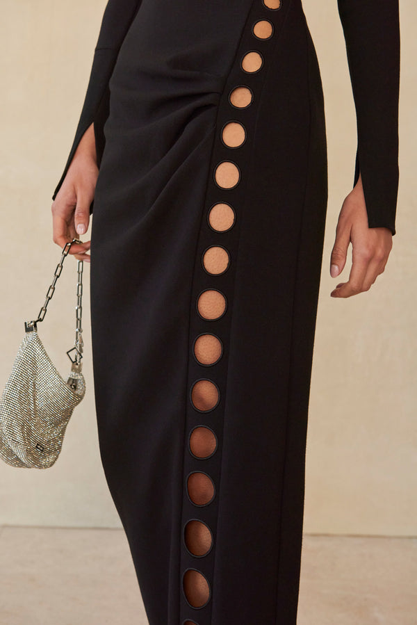 <\/strong> Fit Notes Model is 5'9" and is wearing a size SmallRing cutouts at side waistAnkle-lengthRemovable sleevesBack slit Composition and Care 64% Polyester, 27% Viscose, 9% Elastane