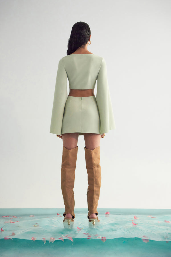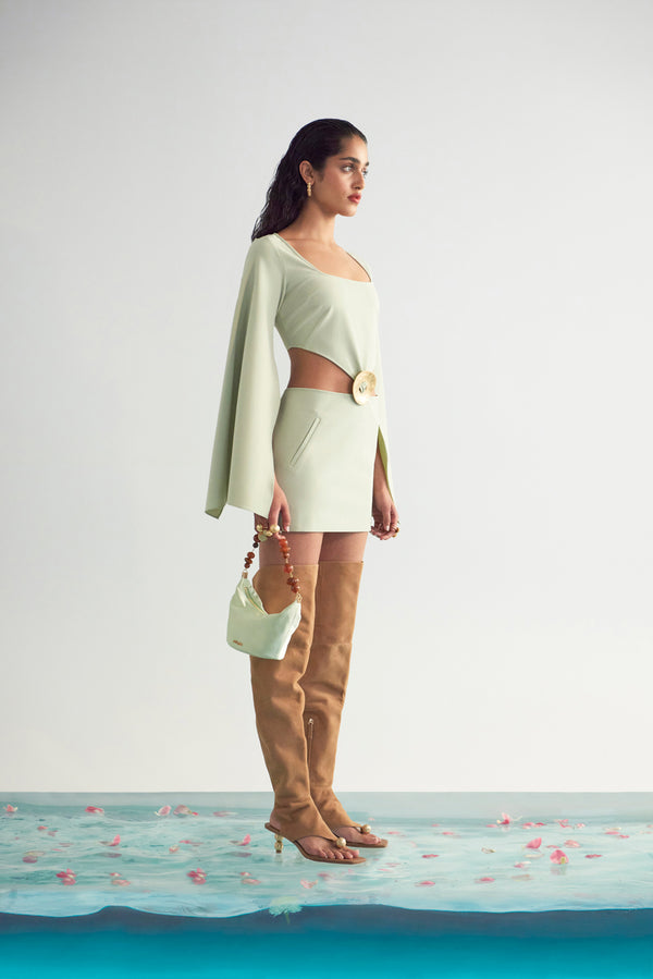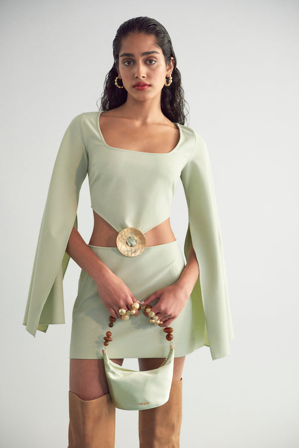 Fit NotesModel is 5'10.5" and is wearing a size Small Unlined Front unfunctional pockets Sleeves open at underarm Straight skirt Stretchy Invisible side zipper at top and center back Composition and Care64% Polyester, 27% Viscose, 9% Elastane |