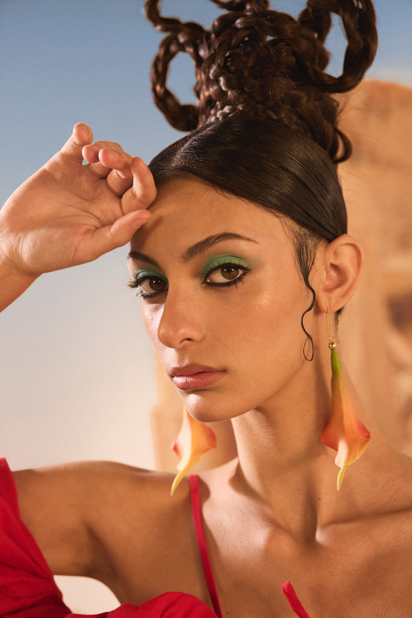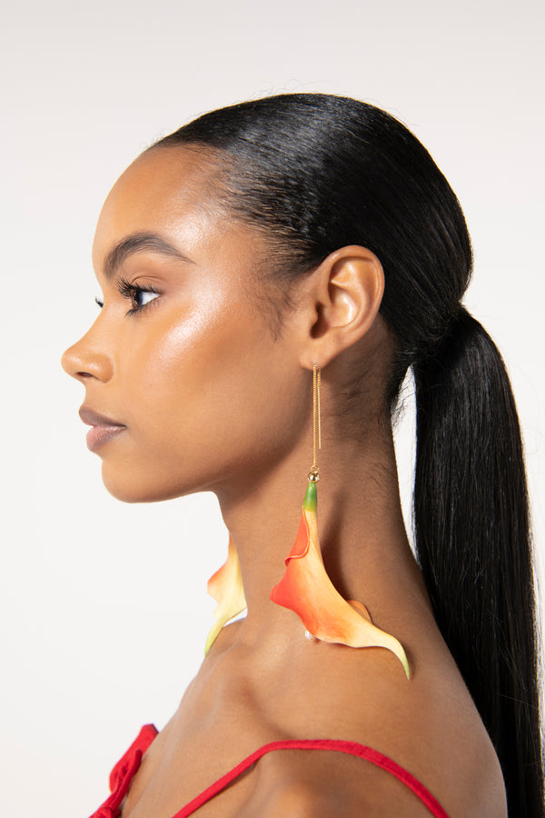 The jaw-dropping, jealousy inducing Calla Earring is sure to become a summer accessory staple. The slim chain detail and drop thread-style features a shoulder skimming, sultry design. Crafted to turn heads, the sunset-hue tinged faux orchid features a hidden freshwater pearl centerpiece that shimmers and catches the light as you move throughout the room. Fit NotesThread chain Lightweight Real freshwater pearl trim Composition and Care3.5" x 2.5" x 5.5" Body: 70% Aluminum, 30% Brass Trim: 100% Polyurethane Trim 2: 100% Freshwater Pearls |