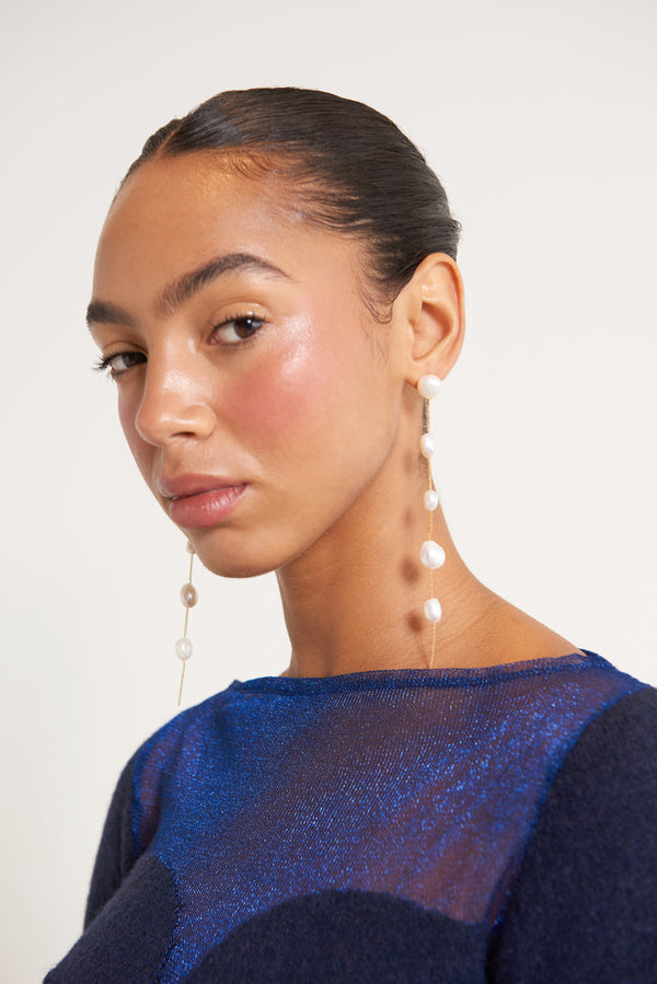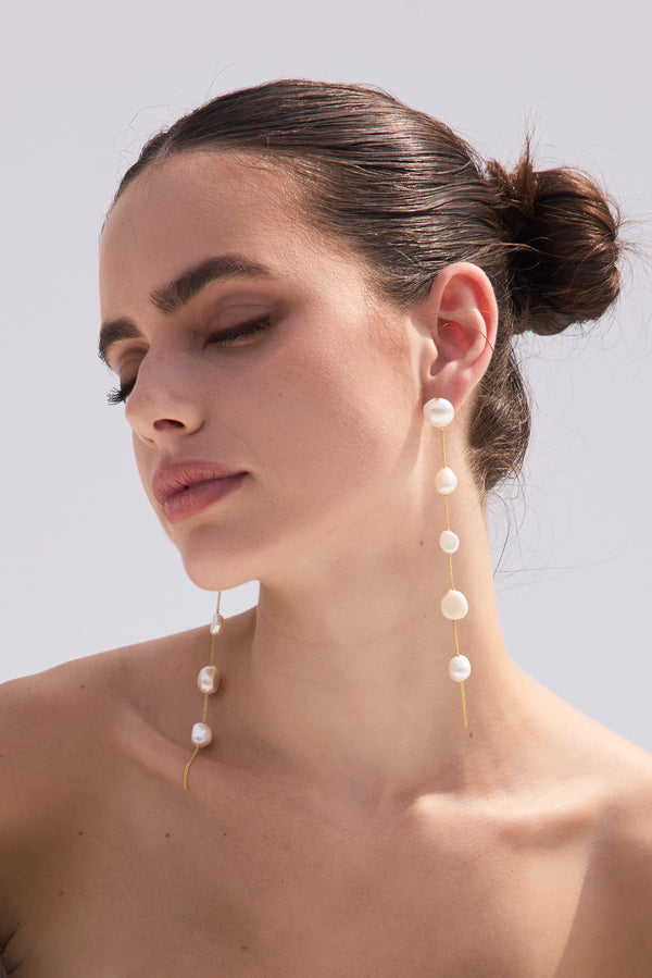 <\/strong> Fit Notes Post earringBrass chainPearl details throughoutLightweight Composition and Care Length: 4.75"Body: 100% BrassTrim: 100% Freshwater Pearls