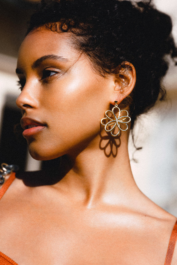 <\/strong> Fit Notes Post earringMedium weightTiny logo engraving on loop Composition and Care 1.75" x 1.5"100% Copper
