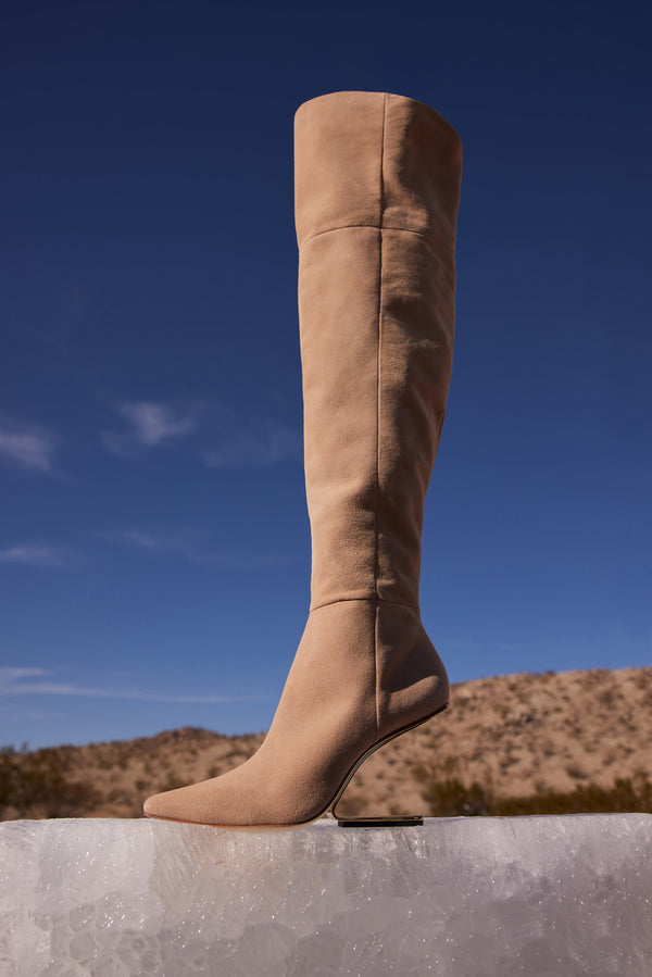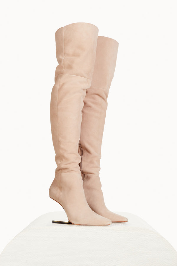 Fit NotesFits true to size Elastic v-opening at top Fold-over style Can be worn straight or slouched Padding at sole Leather lining Composition and CareHeel height: 3.25" Boot shaft height: 23" Opening width: 27.5" Opening with stretch: 29" Body: 100% Cow Leather Sole: 100% Rubber Heel: 100% Iron |
