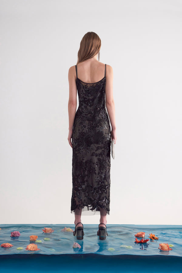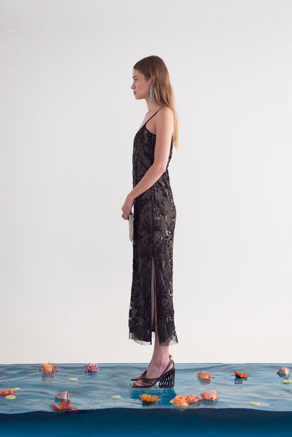 Fit NotesModel is 5'9" and is wearing a size Small Non-adjustable spaghetti straps Invisible side zipper Slip dress at interior Side slits Raw edge hem Composition and Care100% Polyester |