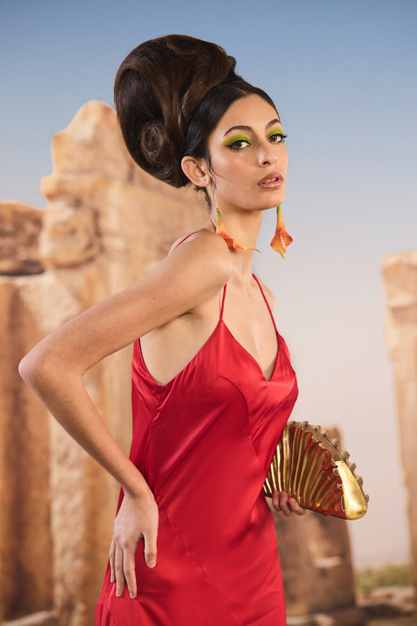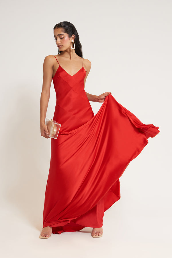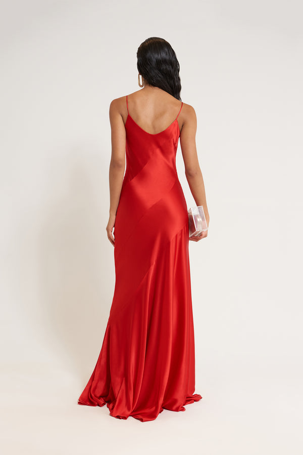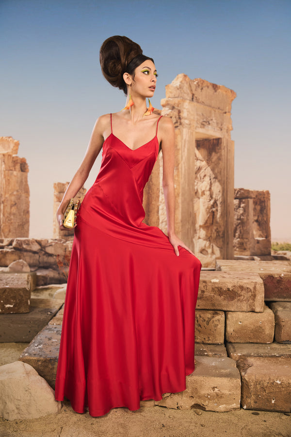 <\/strong> Model is 5'9" and is wearing a size Small Spaghetti straps Bodycon silhouette with flared hem Hemmable Pull-on style: no zipper Unlined Length: 63" 92% Silk, 8% Spandex |