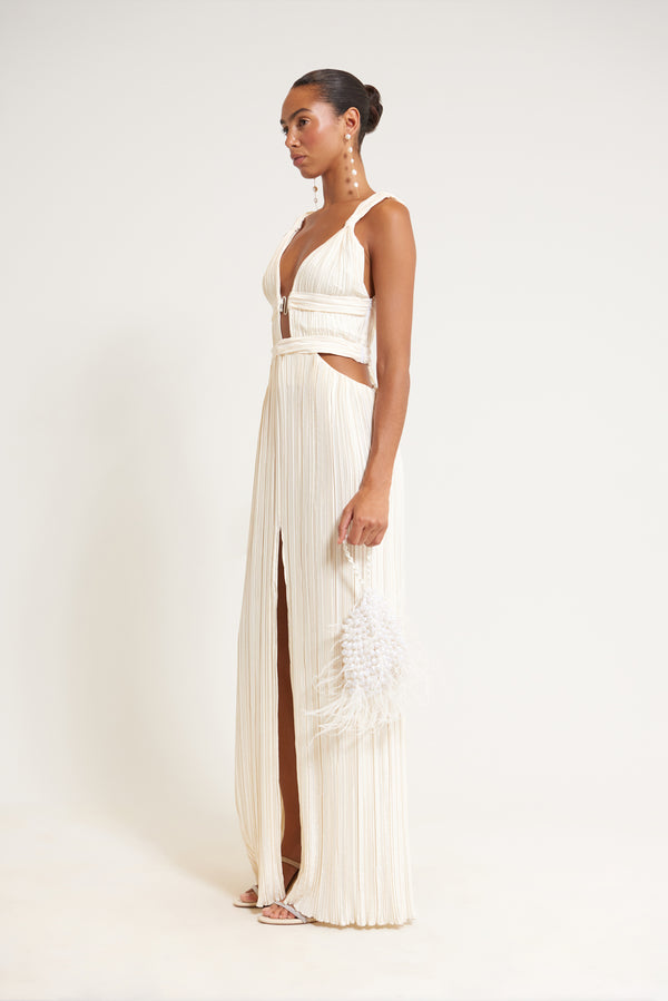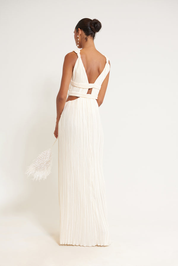 Fit NotesMode is 5'10" and is wearing a size Small Center front slit Functional clasp at bust Unlined Non-adjustable shoulder straps Fitted bust with relaxed skirt Composition and Care100% Polyester |