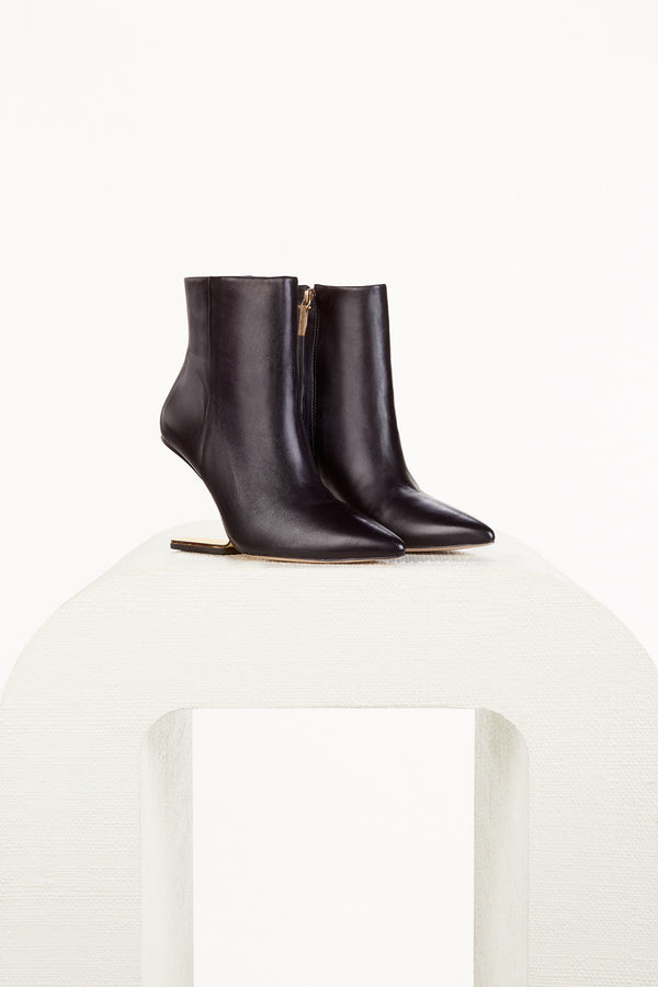 <\/strong>This low-cut boot stuns with its gold-toned illusion heel. Sleek, yet supportive smooth leather stretches up from the pointed toe. Kenna's illusion heel is crafted in iron and outfitted with a rubber sole to give supreme support, while exploring a play on negative space. A classic silhouette with an elevated take to add a Gaia touch to any look. <\/p> Padding at sole Comfortable fit Zipper at side Heel height: 3.25" Body: 100% Cow Leather Sole: 100% Rubber Heel: 100% Iron |
