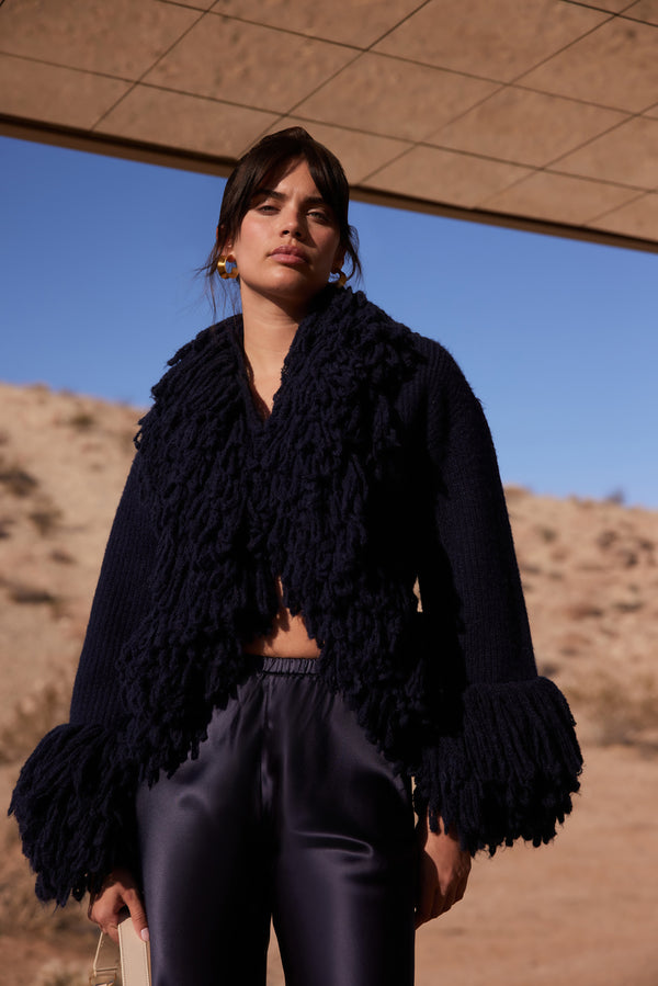 Fit NotesModel is 5'9" and is wearing a size Small Front button closures Chunky knit with loop fringe Easy fitting Heavyweight Composition and Care6% Wool, 68% Acrylic, 12% Polyester, 11% Nylon, 3% Spandex |