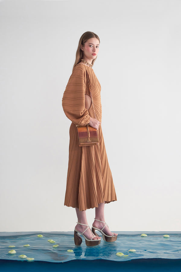 Fit NotesModel is 5'9" and is wearing a size Small Structured rib knit Cutouts at side with adjustable string Adjustable sleeve Leveled hem Composition and Care80% Dull Rayon, 20% Nylon |