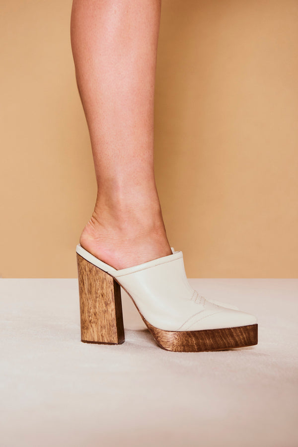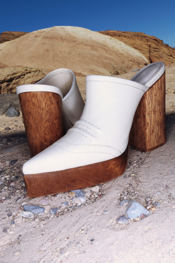 ?Preorder - Estimated Ship Date Between March 8th and March 22nd<\/b><\/span><\/p>\n Nidia's wooden sole and heel gives tremendous lift and stability. The Off White nappa leather is a classic compliment to the natural hues of the heel. Detailing across the foot and closed toe add stylish touches to this simple-to-wear shoe. There is no look that Nida can't enhance.<\/p> Heel: 4.5" UPPER: 100% Cow Leather SOLE: 100% Rubber HEEL: 100% Wood |
