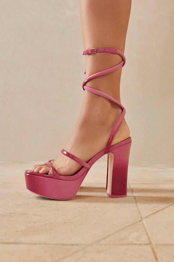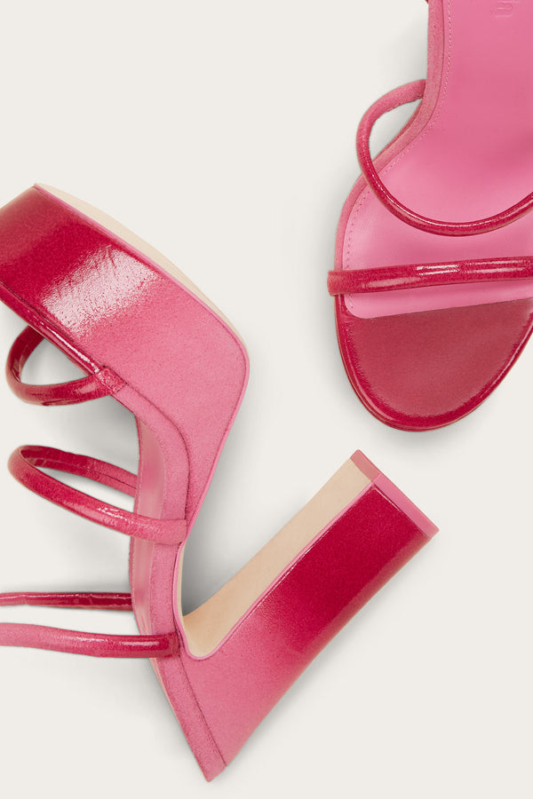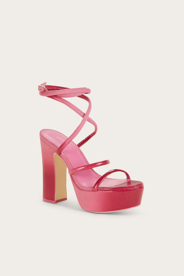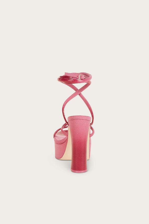 ?Preorder - Estimated Ship Date Between March 8th and March 22nd<\/b><\/span><\/p>\n Aliza's got a little lift and a lot of style. These platform heels are adorned with Calliandra-hued ombr�� patent leather strapping that wraps across the foot and up to the mid-calf giving a slimming and seductive effect. An adjustable fit makes the Aliza simple to walk in and undeniably easy to wear.<\/p> Made from Italian leather? Adjustable ankle straps For a narrow foot we recommend ordering true to size? For a wider foot we recommend sizing up a half size? Heel: 6" UPPER: 100% Cow Leather SOLE: 100% Rubber HEEL: 100% ABS |