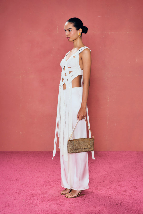 <\/strong> Fit Notes Model is 5'8" and is wearing a size SmallFitted waistCenter back zipperFlowy leg Composition and Care 100% Silk