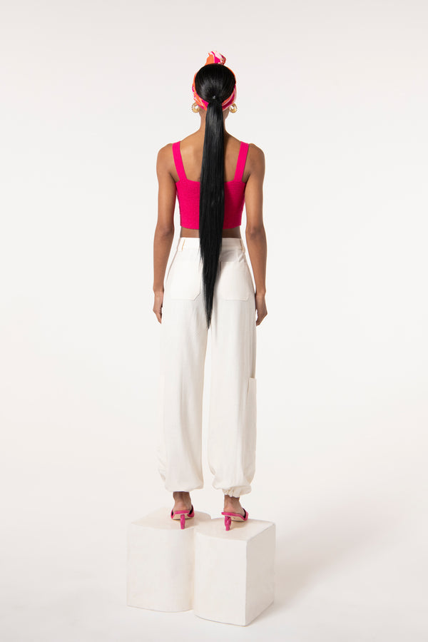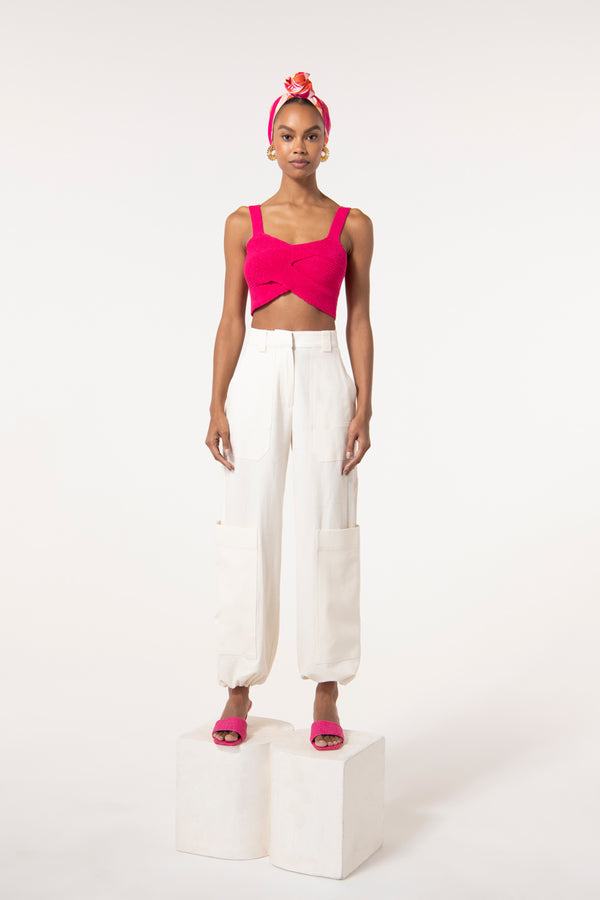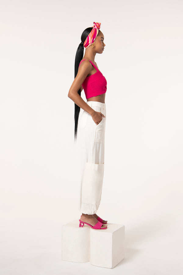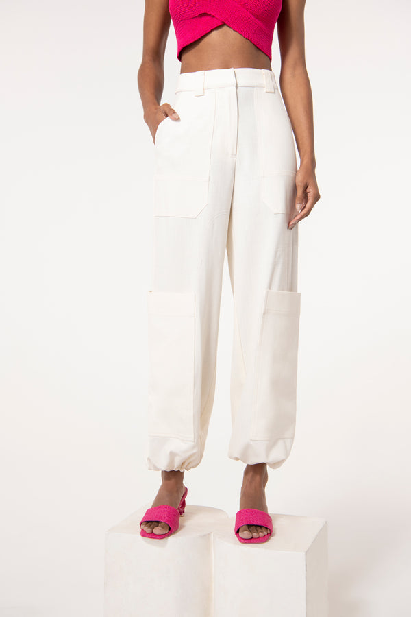 Fit NotesModel is 5'9" and is wearing a size 4 High waist Cargo pockets Wide leg Adjustable drawstring cord at hem Composition and Care83% Viscose, 14% Polyester, 3% Elastane |