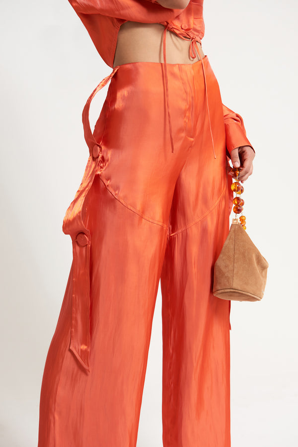 Fit NotesModel is 5'9" and is wearing a size Small Unlined Center front fly opening Opaque fabric Functional buttons at side strap Slightly stretchy Hemmable Runs small, we recommend sizing up Composition and Care100% Polyester |