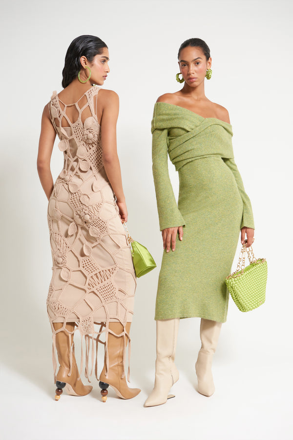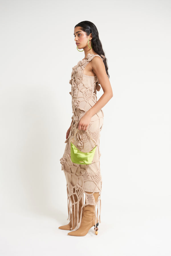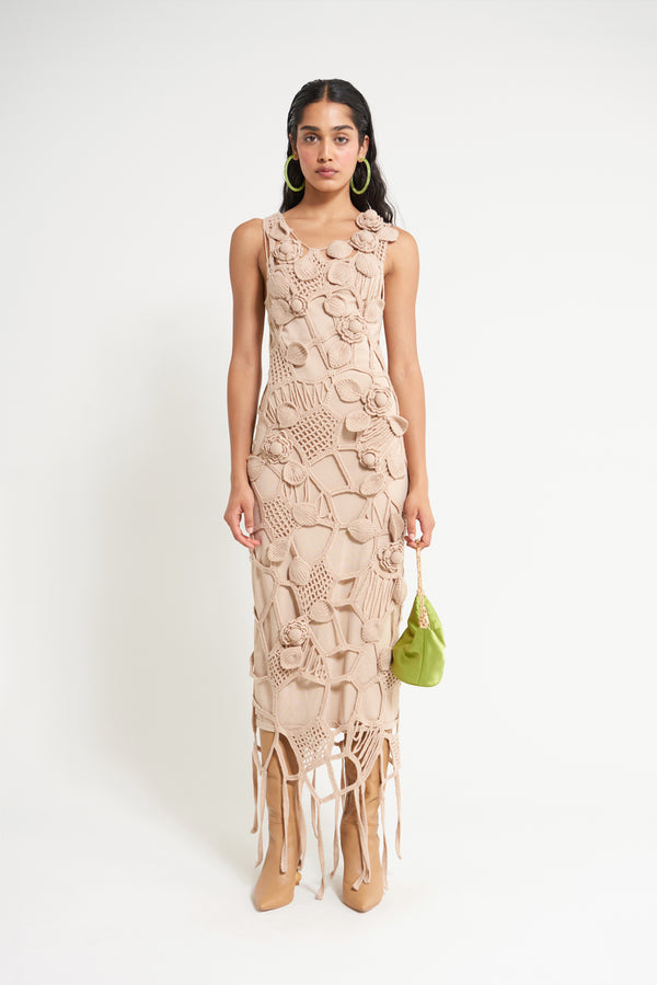 Fit NotesModel is 5'9" and is wearing a size Small Removable slip dress at interior Fringed hem Hand-crocheted flower appliques Fragile Fold in storage to avoid overstretching Composition and Care50% Wool, 30% Nylon, 20% Acrylic |