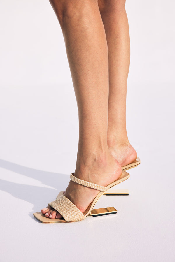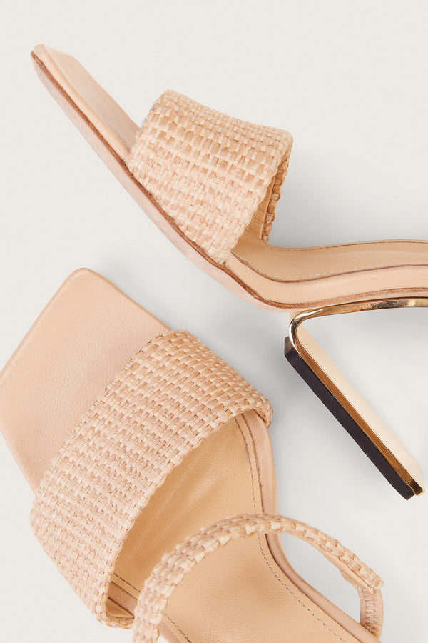 Fit NotesRuns true to size Metal bar heel structure Elastic front strap Composition and CareHeel height is approximately 3.5" Upper: 50% Nylon, 50% Cotton Sole: 100% Goat Leather Heel: 100% Iron |