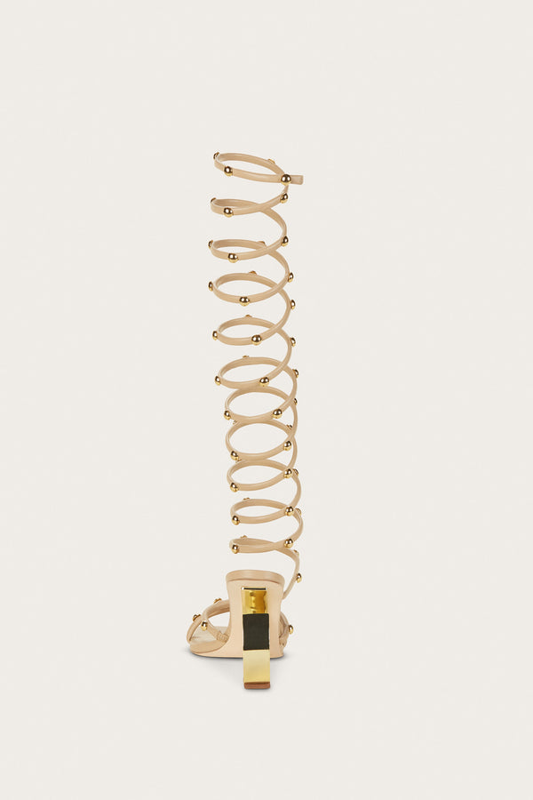 ?Preorder - Estimated Ship Date Between February 21st and March 7th<\/b><\/span><\/p>\n Perla is perfection. This artful heel if full of details, from the semi-circular metal heel, to the metal studs on the adjustable nappa leather strapping that spirals up the leg. Two straps over the foot hold you to the nappa leather sole. Perla's details and ultra-slipping effect is guaranteed to turn heads.<\/p> Heel: 4.25" UPPER: 100% Leather Wrapped Wire SOLE: 100% Reconstituted Leather HEEL: 100% Steel |