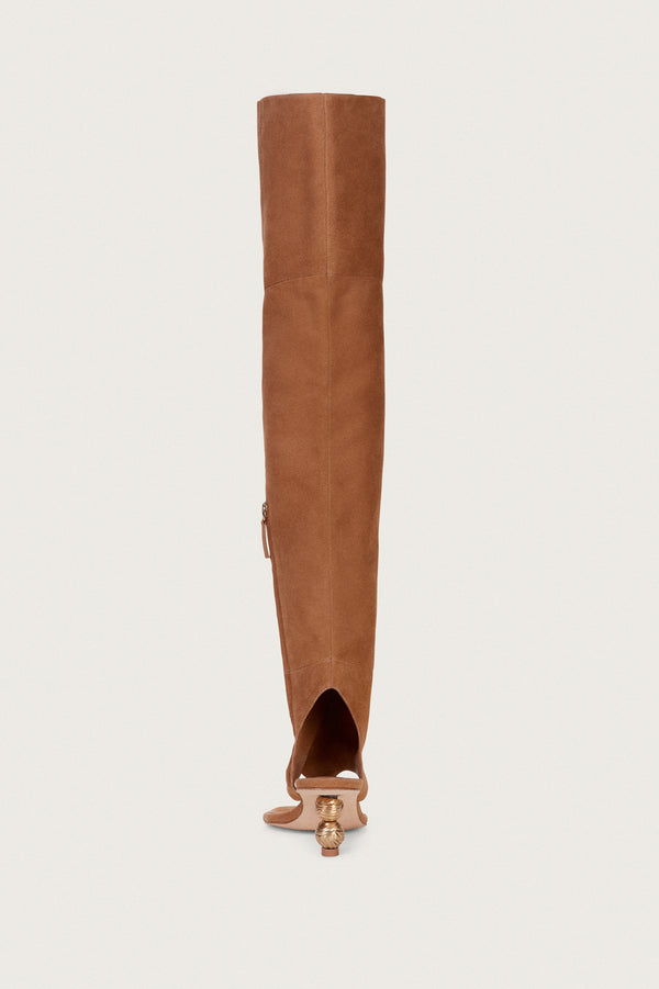Fit NotesCutout at back and front Over-the-knee Thigh high Kitten heel Slight padding at sole Composition and CareHeel height: 2" Body: 100% Goat Leather Sole: 100% Rubber Heel: 100% Zinc Alloy |