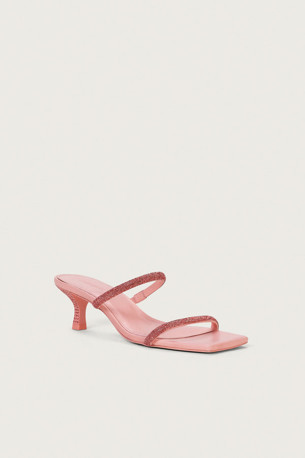Fit NotesKitten heel Rhinestone embellished Front straps Composition and CareHeel height: 2" Body: 60% Polyester, 40% Glass Stones Sole: 100% Rubber Heel: 50% Glass Stones, 50% ABS |