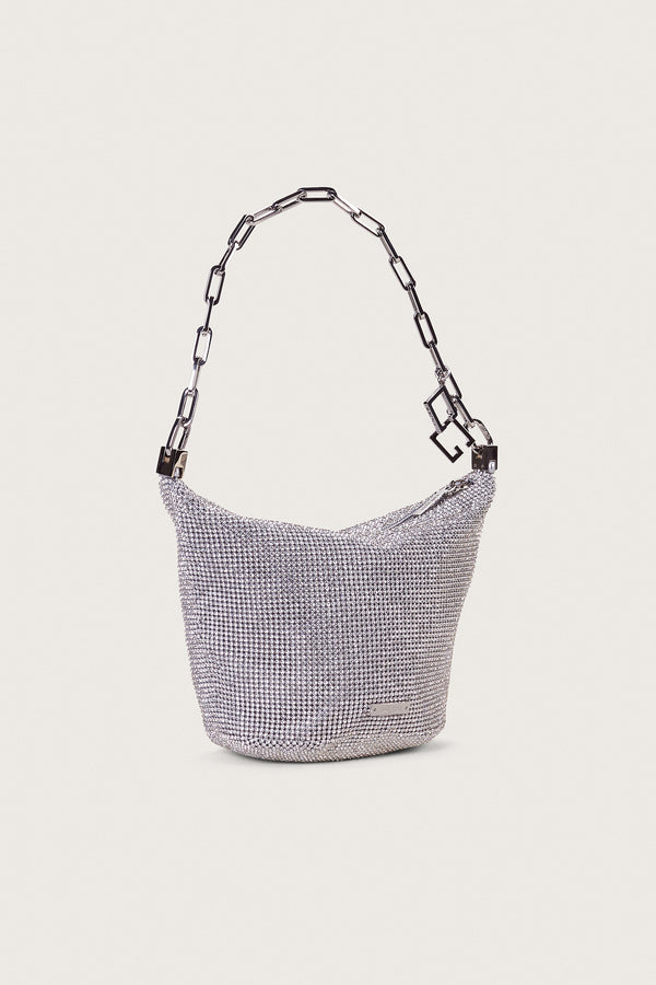 Fit NotesTop zipper closure Silver non-detachable handle strap Microsuede interior lining Leather base Fits large phone, wallet, keys, accessories Composition and Care9.84" x 6.5" Body: 100% Polyester Trim: 100% Glass |