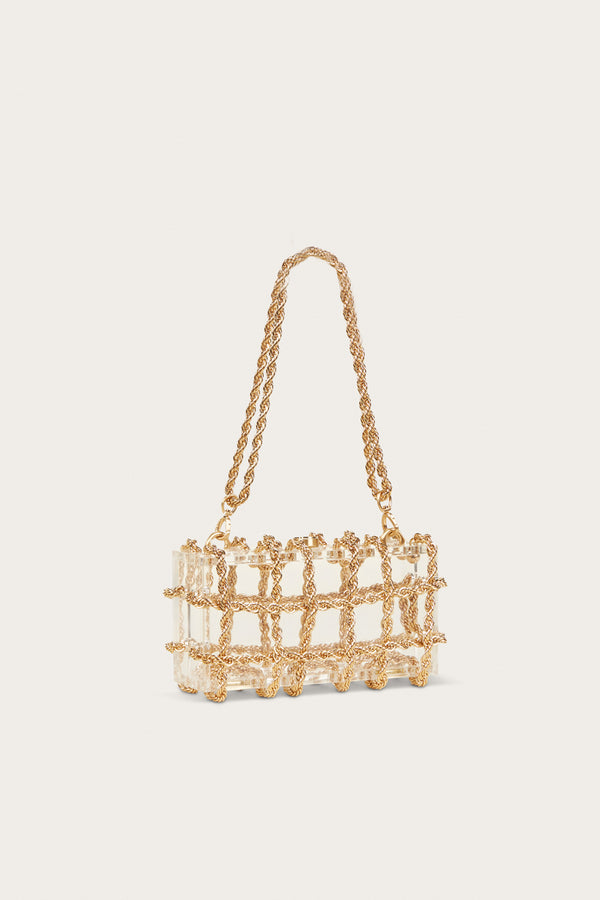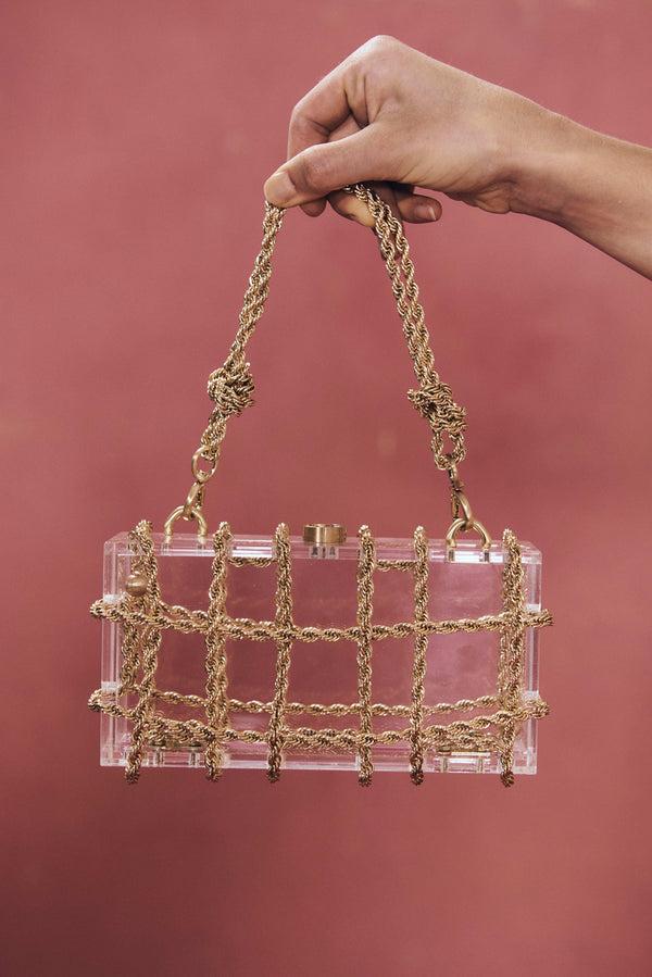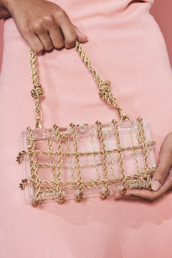 Fit NotesWeight: 2.7lbs Can be worn as a shoulder bag or a clutch Removable handle strap with lobster clasps Can fit an iPhone, small wallet, keys, etc. Clasp closure at top Composition and Care2.36" x 3.93" x 7.63" 100% Acrylic? TRIM: 100% Zinc alloy? |