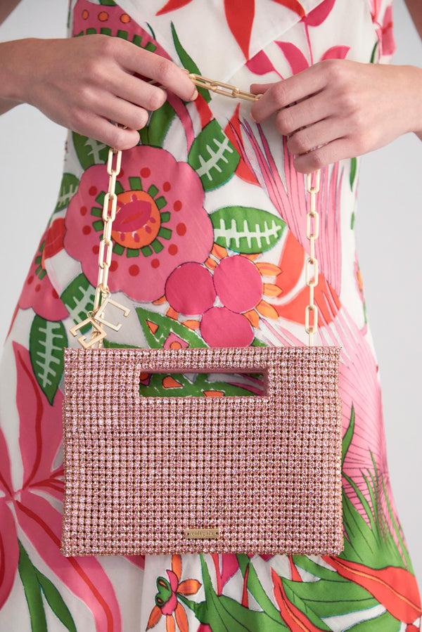 LUCINDA MINI RHINESTONE SHOULDER BAG - AZALEA
