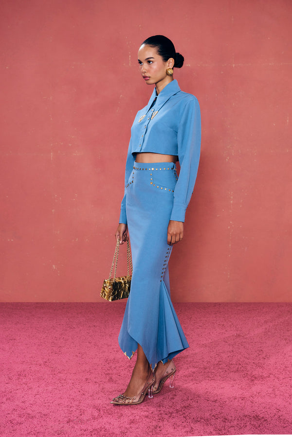 Collar tips on edge of skirt