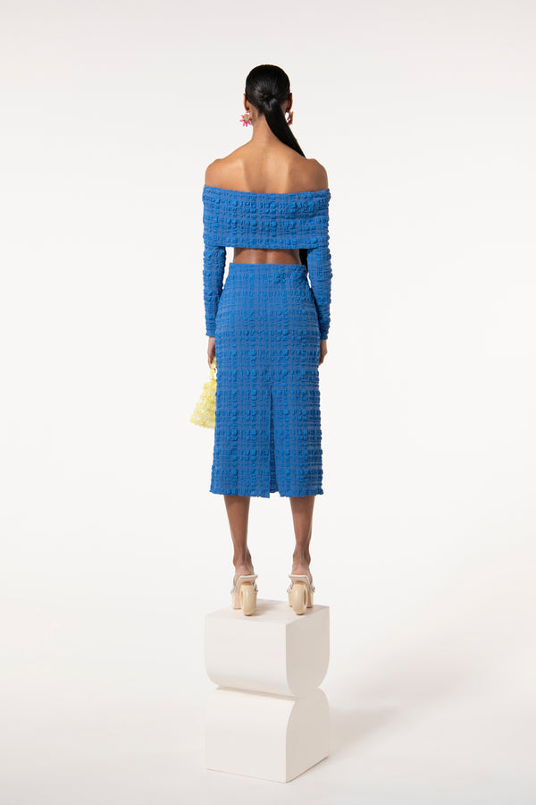 Fit NotesModel is 5'9" and is wearing a size Small Stretchy fit Invisible zipper Center back slit Fitted waist Runs small; we recommend sizing up Composition and Care64% Polyester, 32% Polyamid, 4% Elastane |