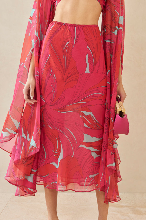 <\/strong><\/strong>Talia is a high-waisted wonder of a skirt. The flora-printed marshmallow chiffon fabric offers incredible movement and the bright Chantarelle Pink hue enhances the drama. The slightly flared hemline allows for a pooling and tumbling of fabric that gives a romantic air. Wear with the coordinating Mimi Top for a full Gaia look. <\/p> Elastic waistband? Lined? |