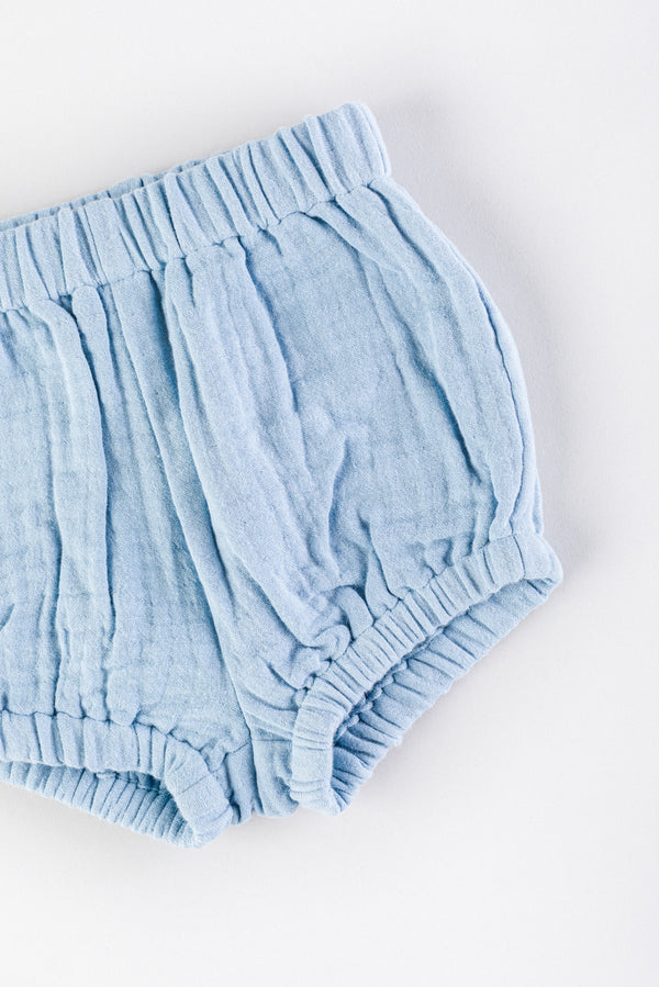 Elastic at waistband and leg openings