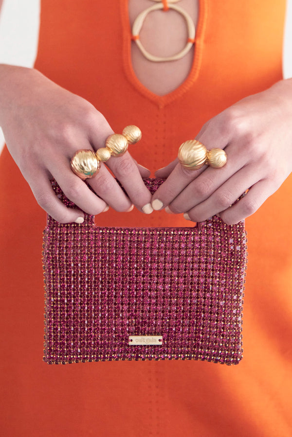 LUCINDA NANO RHINESTONE CLUTCH- DRAGONFRUIT
