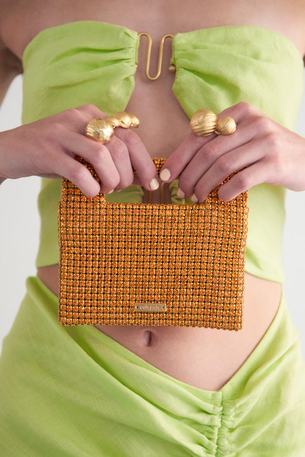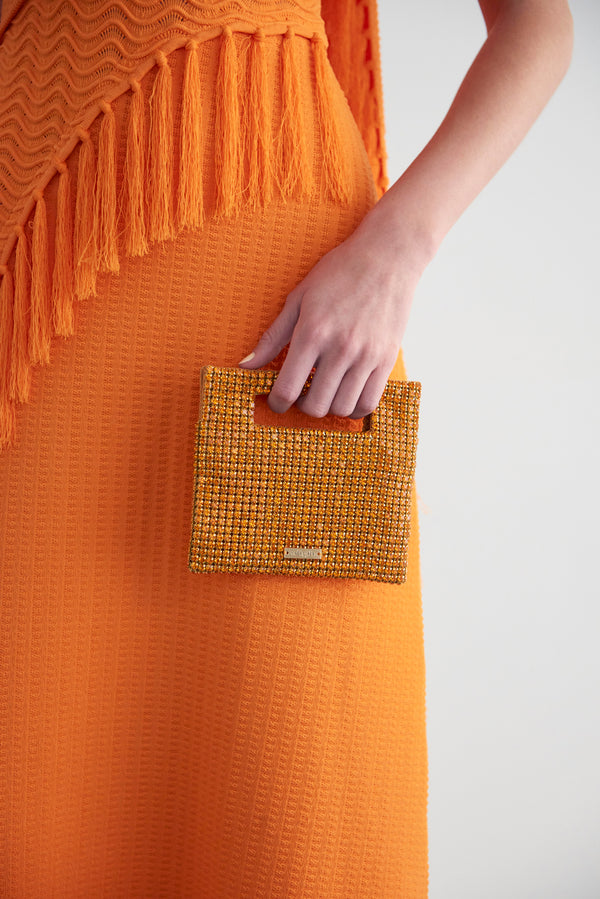 LUCINDA NANO RHINESTONE CLUTCH - PAPAYA