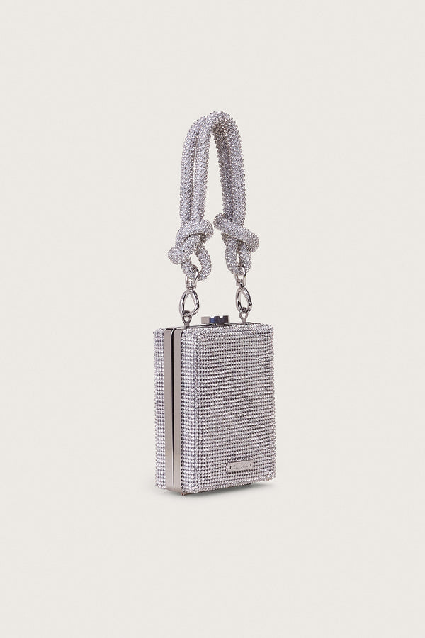<\/strong>The dazzling Henny Nano Bag is fully rhinestone embellished from case to handle. The knotted handle mirrors our signature Hera Rhinestone Bag, and has detachable lobster claw clasps. This bag has a sliding top clasp closure to keep your belongings safe. Its Nano size fits a card or two and lip gloss snugly. The Henny is designed for function, but mostly fun. <\/p> Fully lined Top clasp closure Removable handle Does not fit a phone 1.57" x 4.41" x 3.43" Body: 100% Glass Lining: 90% Polyester, 10% Polyurethane |