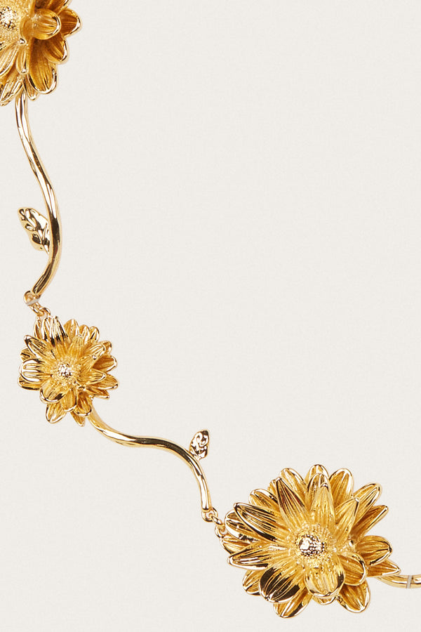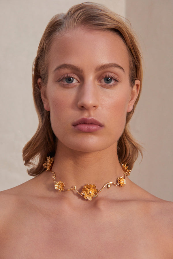 ?Preorder - Estimated Ship Date Between and February 20th and March 6th<\/b><\/span><\/p>\n A harmonious combination of delicate floral forms sculpted in powerful, gold-toned brass. Each flower in the Suki Choker is individual in size and form and rests in different positions on an undulating brass vine with leaf detailing. The shine of the gold-toned brass metal is guaranteed to bring glamour to this natural piece.<\/p> Adjustable? Lobster claw closure 0.40" x 17.91" 100% Brass |