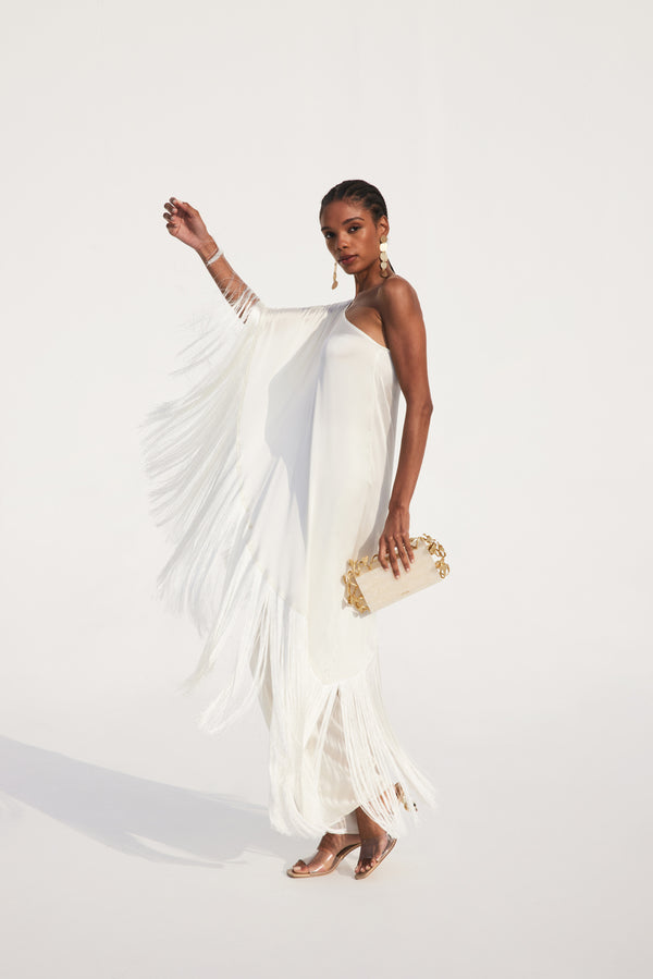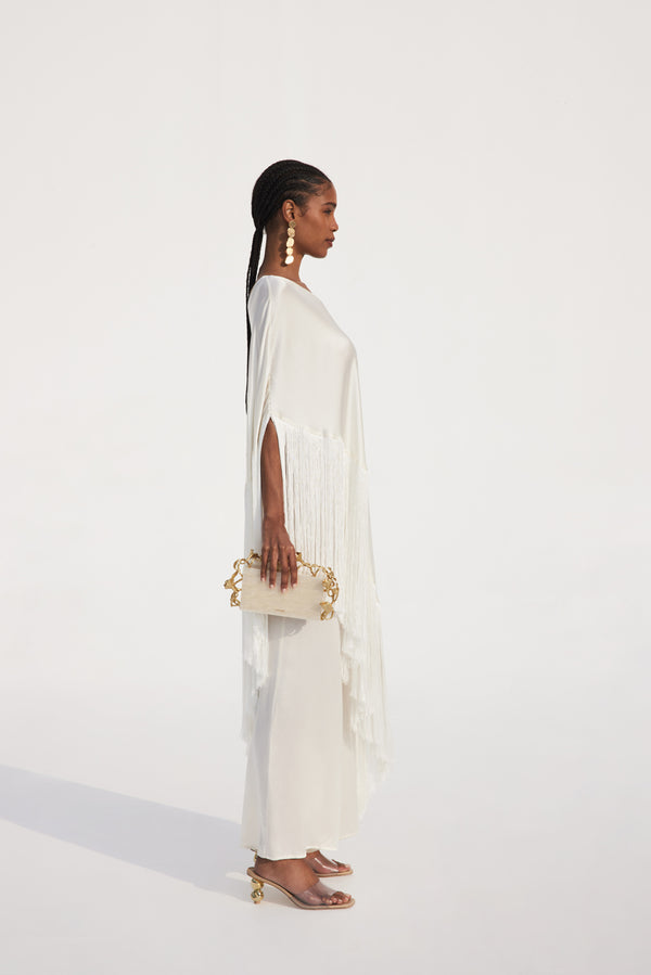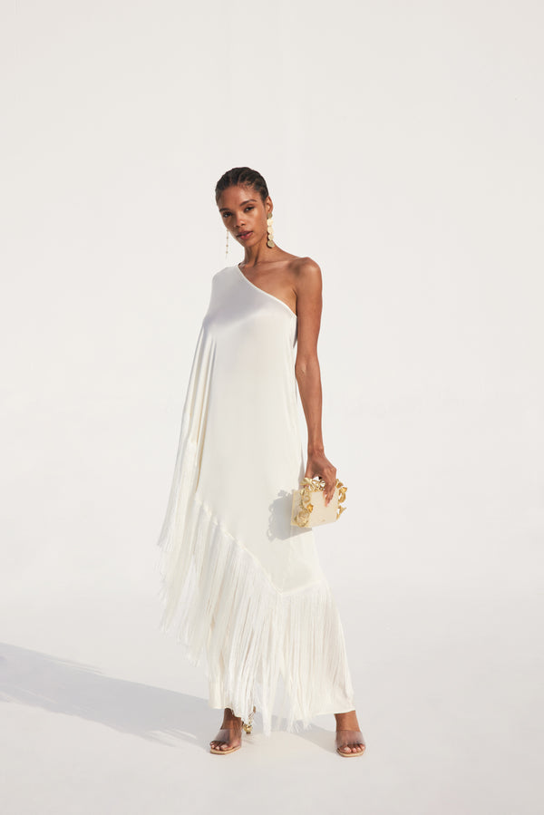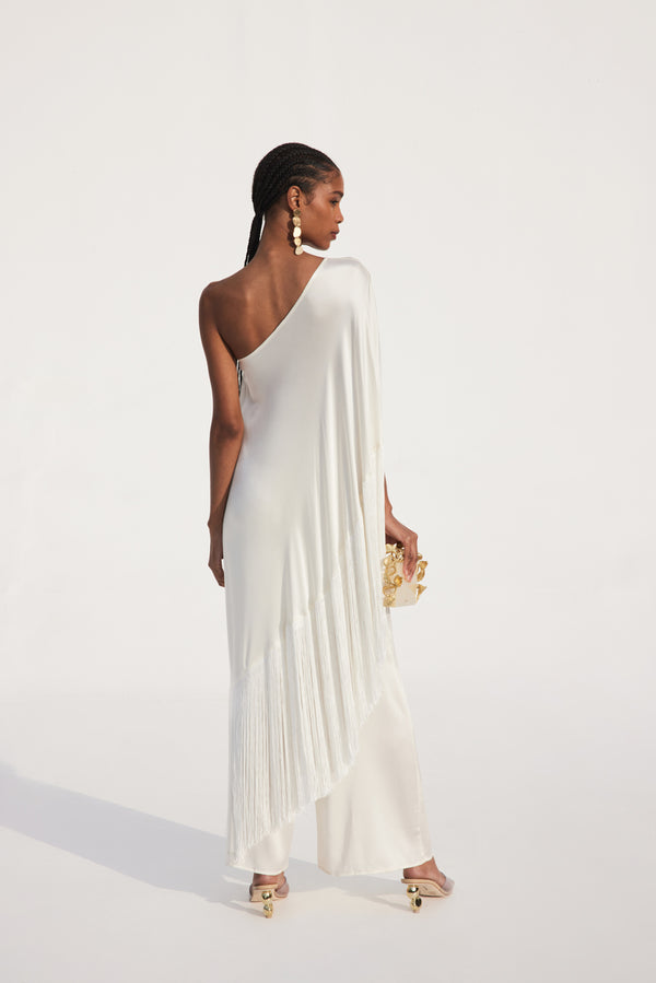 Fit NotesModel is 5'8" and wearing a size Small Length: 49" Off-the-shoulder top Voluminous long sleeves Asymmetrical hemline Not lined Stretchy fabric Larger chest should size up If petite, we recommend sizing down Composition and Care92% Silk, 8% Spandex |