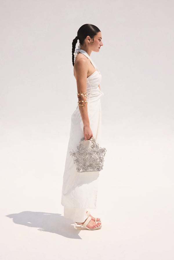 Fit NotesModel is 5'9" and is wearing a size Small Double layered Inside gel tape at neckline Invisible zipper Thick fabric neck tie Stretchy fabric Upper body is meant to be snug Composition and Care77% Rayon, 20% Nylon, 3% Spandex |