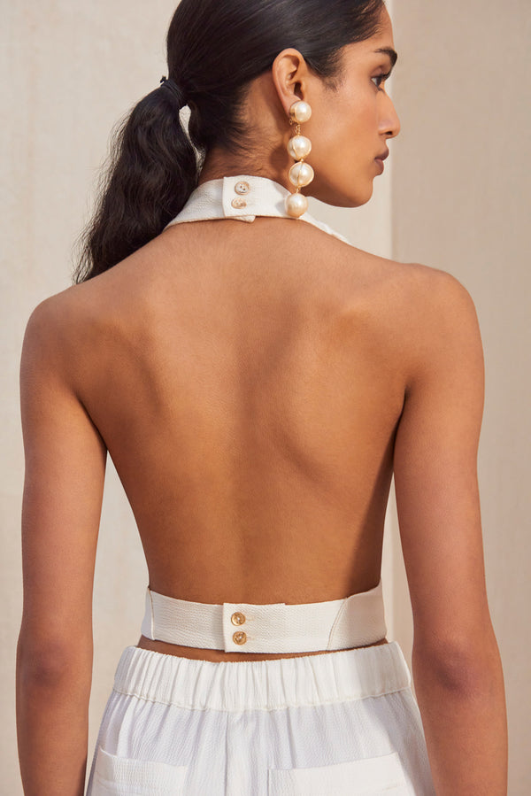 <\/strong> Fit Notes Model is 5'9" and is wearing a size SmallCowl neckBack strapUnlinedStrap at waist with button Composition and Care 98% Polyester, 2% Elastane